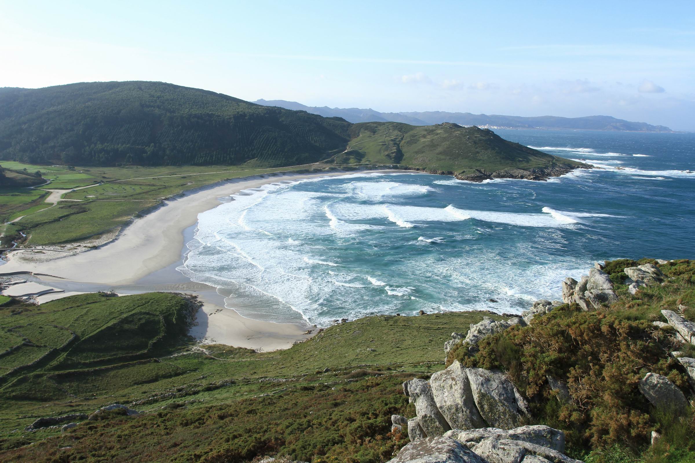 - 35 km (40 Minuten mit dem Auto) von Muxía entfernt, mit dem Heiligtum der Virgen de la Barca und leider als km 0 der Prestige-Katastrophe bekannt.